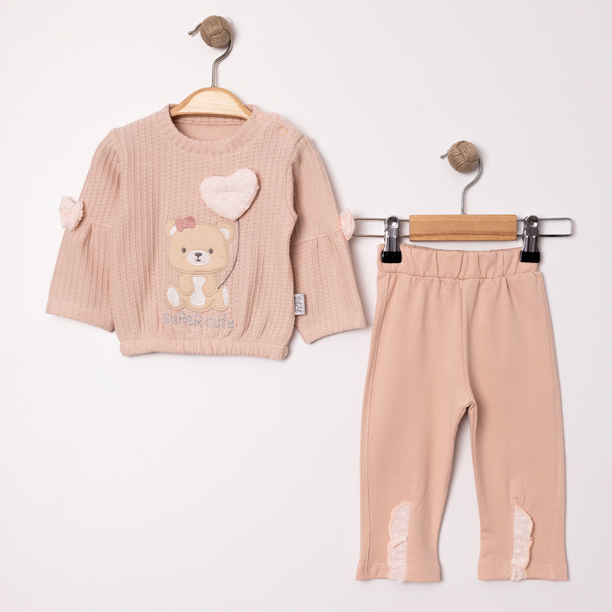 • Блузичка со слатко мече – пресладок детал што го прави овој комплет уште попривлечен.