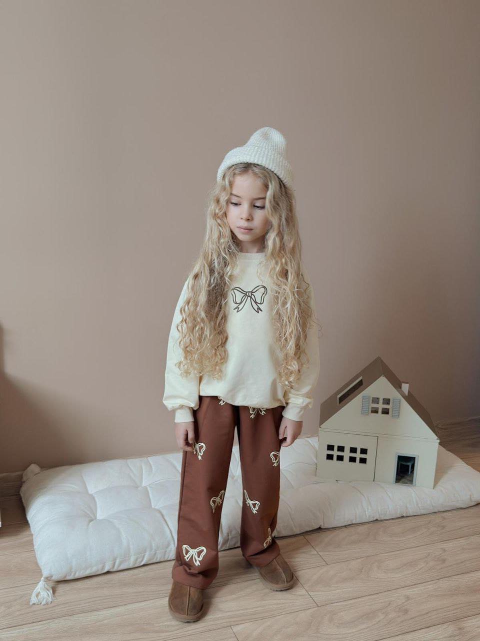 Памучни панталони во кафена боја со декоративни машнички 🤎