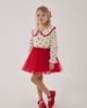 Долниот дел е прекрасно тул здолниште кое создава волуменозен и елегантен изглед. Лесниот и разигран дизајн му дава бајковит шарм на целиот комплет. Еластичниот појас овозможува удобно прилегање и слобода при движење. Здолништето се движи нежно при одење и игра, што го прави особено впечатливо. Овој модел додава вистинска доза на радост и стил. ✨