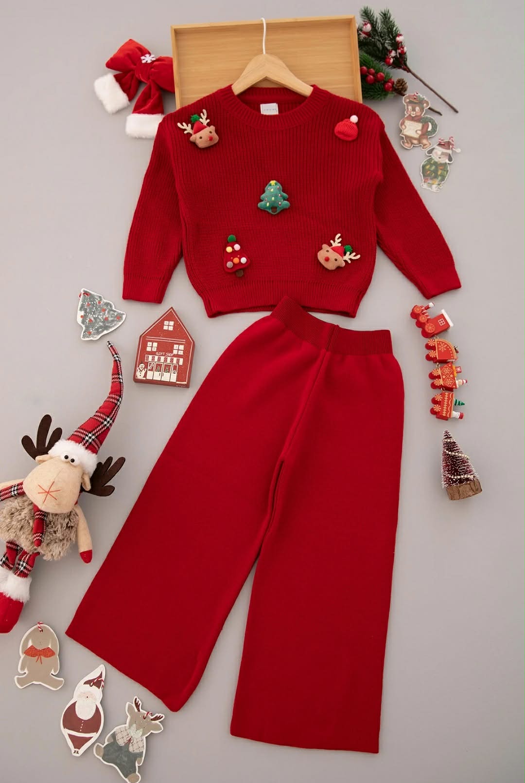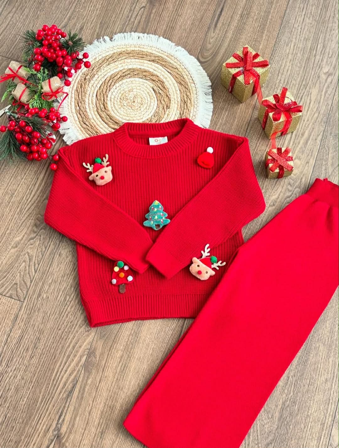 Плетен џемпер со празнични апликации (елкичка, ирвасче и новогодишни детали) кои му даваат весел и свечен карактер. Материјалот е мек и пријатен, не боцка и овозможува удобно носење во текот на целиот ден. Кројот е комотен и практичен, погоден за активно движење.