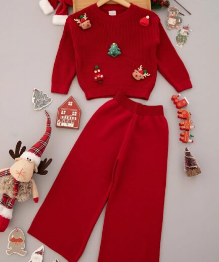 Плетен џемпер со празнични апликации (елкичка, ирвасче и новогодишни детали) кои му даваат весел и свечен карактер. Материјалот е мек и пријатен, не боцка и овозможува удобно носење во текот на целиот ден. Кројот е комотен и практичен, погоден за активно движење.