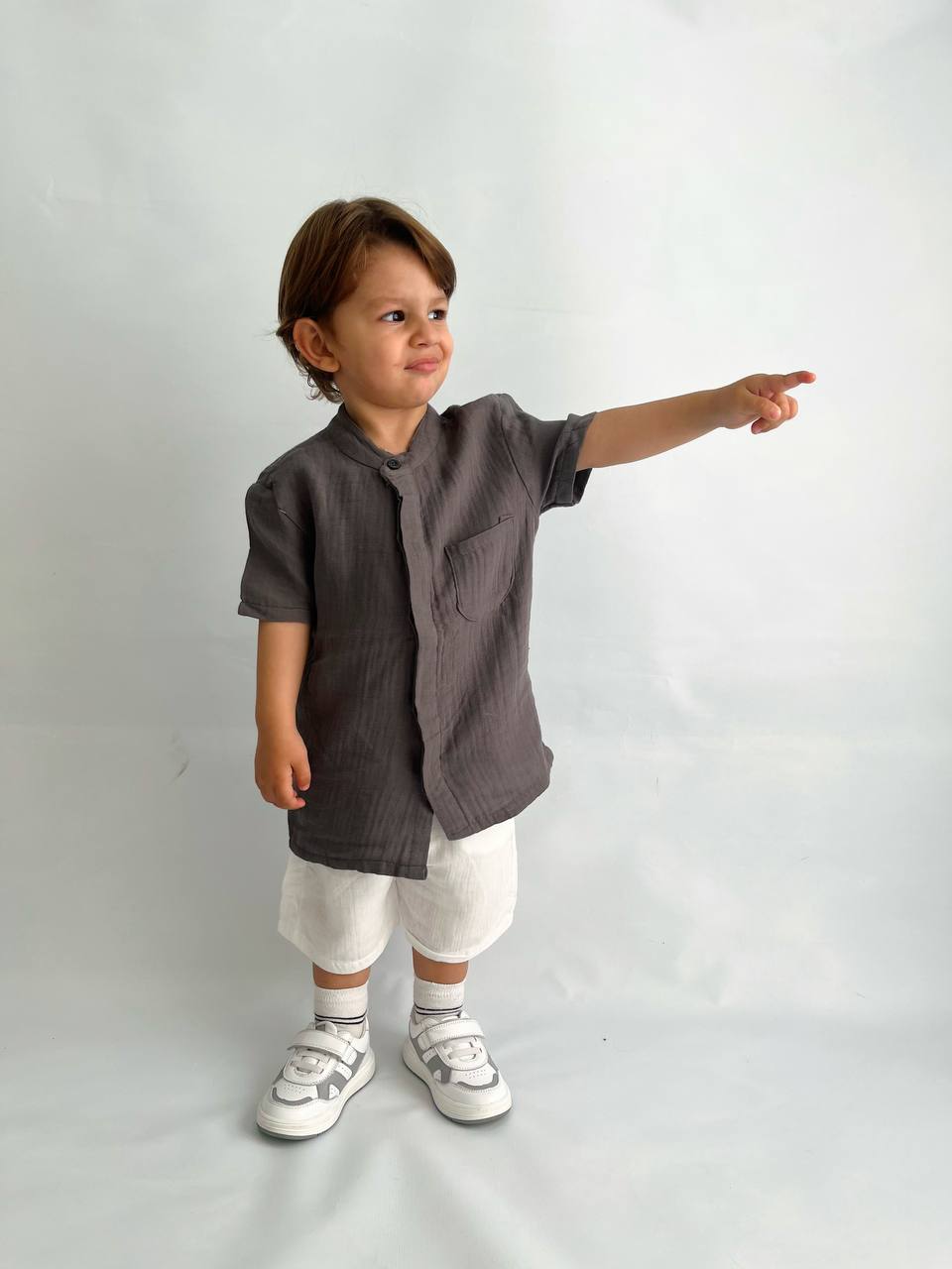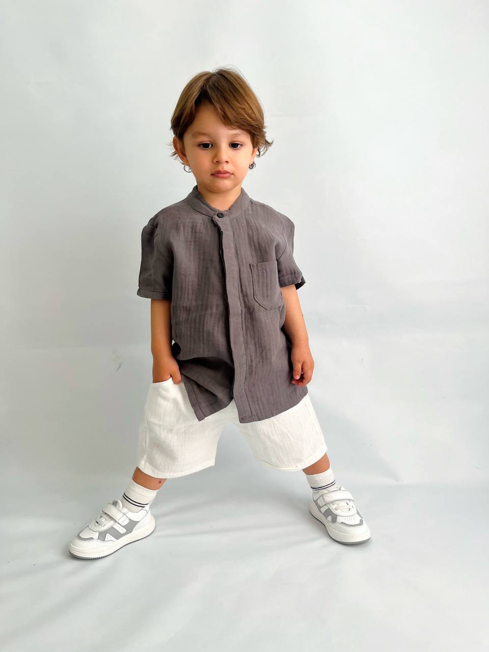 Кратки панталончиња со ластик на половината за удобно носење 👌 Изработени од лесен памучно-ленен материјал, совршени за движење и игра. Бојата е нежна кремаста/бела 🤍 која одлично се комбинира со горниот дел.