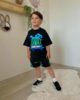 🩳 Шорцеви: Црни со Minecraft детали во зелена неон нијанса, со еластичен струк за максимален комфор.