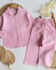 Елегантна кошулка со долги ракави изработена од мек памучен материјал 🌿 Со копчиња во предниот дел и лежерен крој што овозможува слобода при движење. Бојата е нежно розова 🌸 која дава топол и нежен изглед.