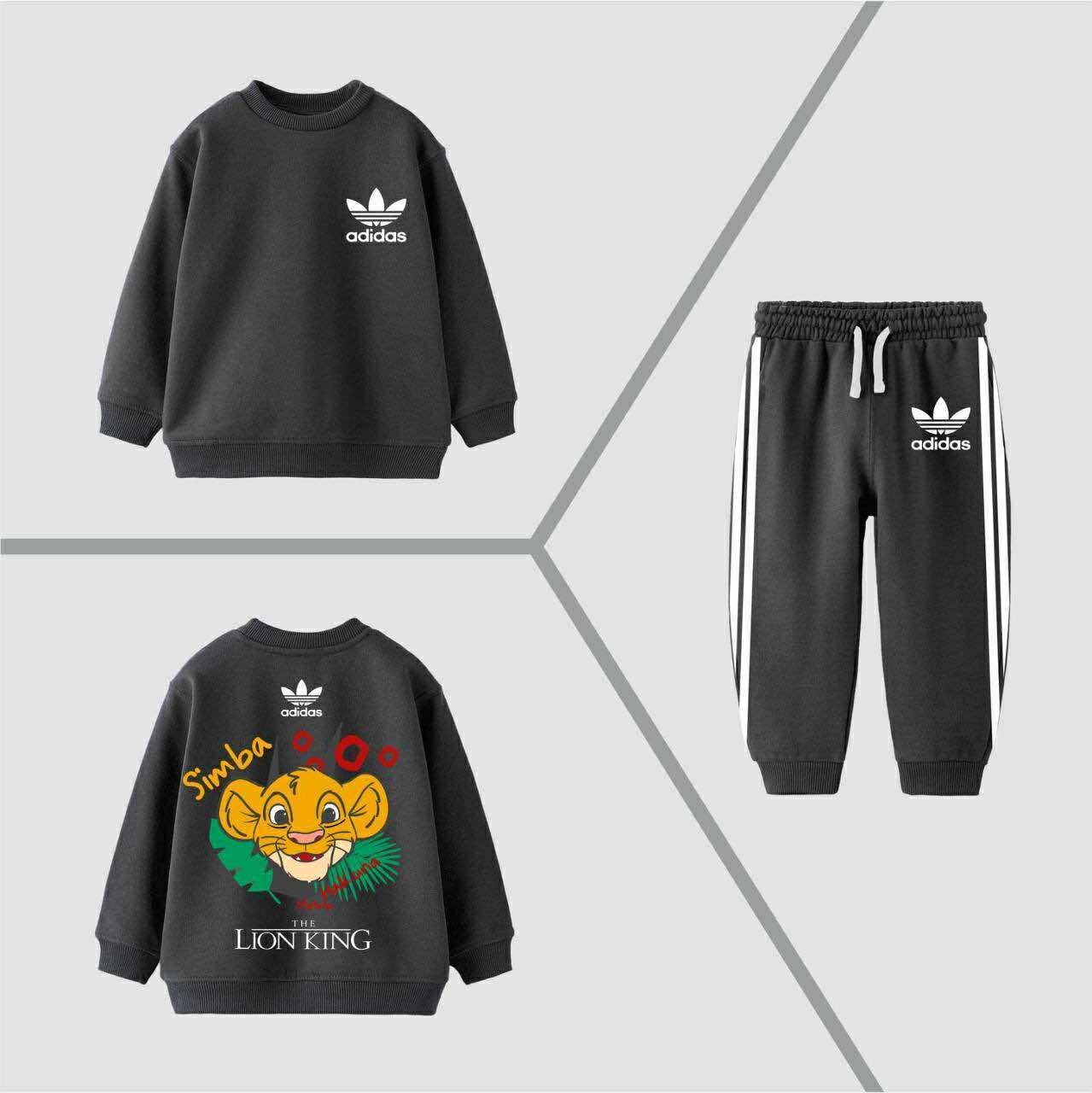👕 Горен дел: Мек и удобен блузон со ликовниот принт на Симба и препознатливиот Adidas логотип. Веселите детали во боја го прават овој модел омилен кај најмалите.