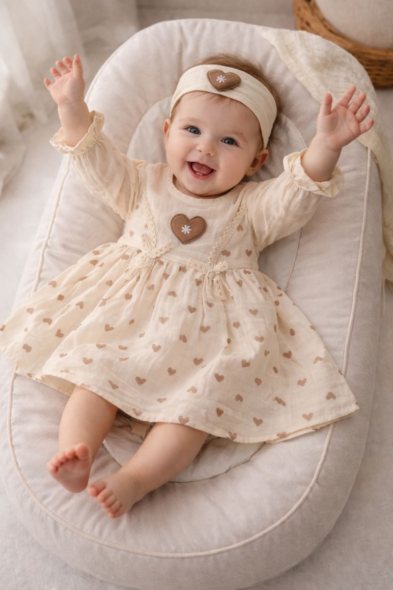 Нежен и елегантен памучен фустан за бебе, наменет за возраст од 3 до 18 месеци, создаден да обезбеди удобност, слобода на движење и неодолив изглед.