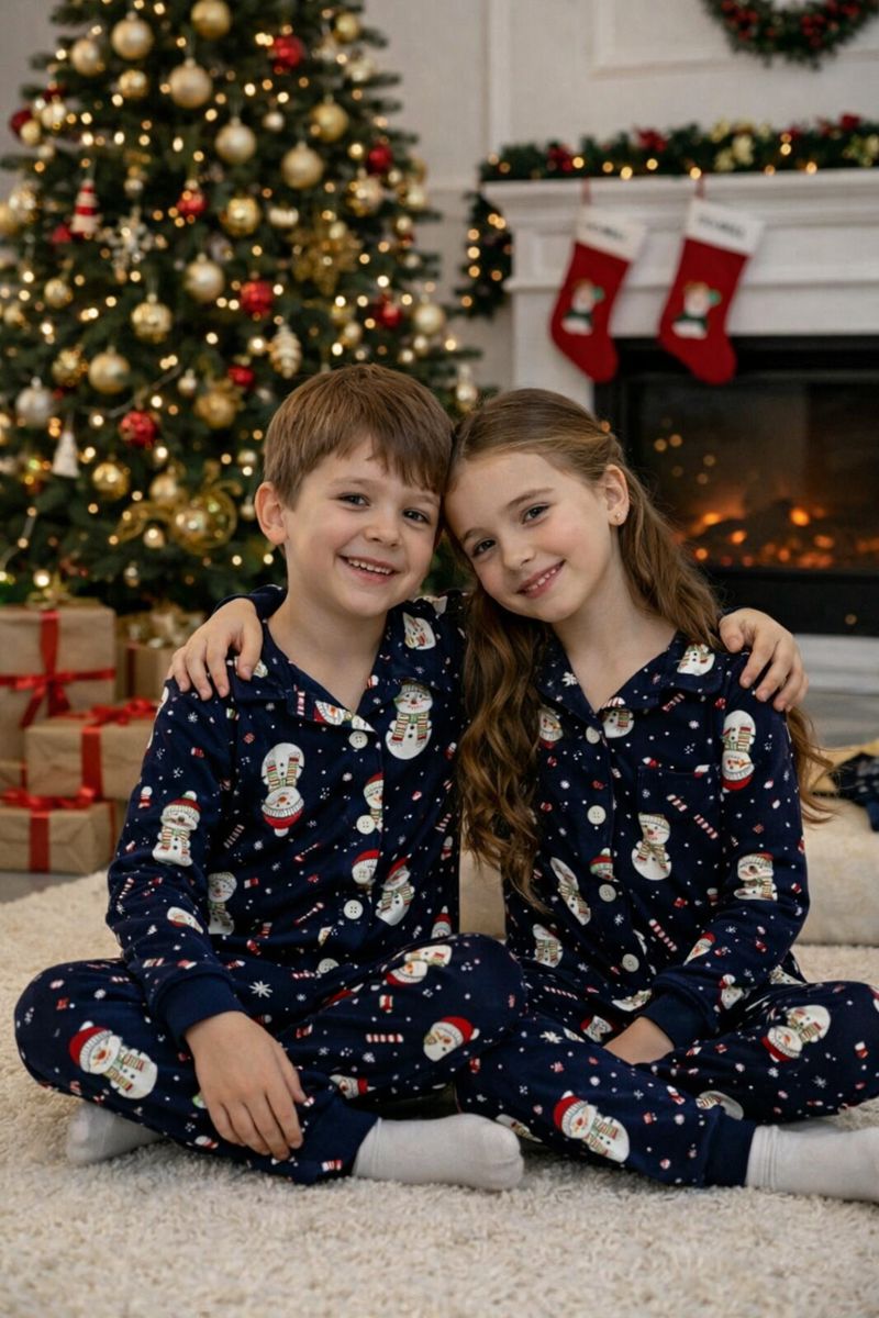 🎄❄️ Новогодишни пижами со весел снешко-дизајн, создадени за топли, удобни и насмеани зимски вечери дома.
