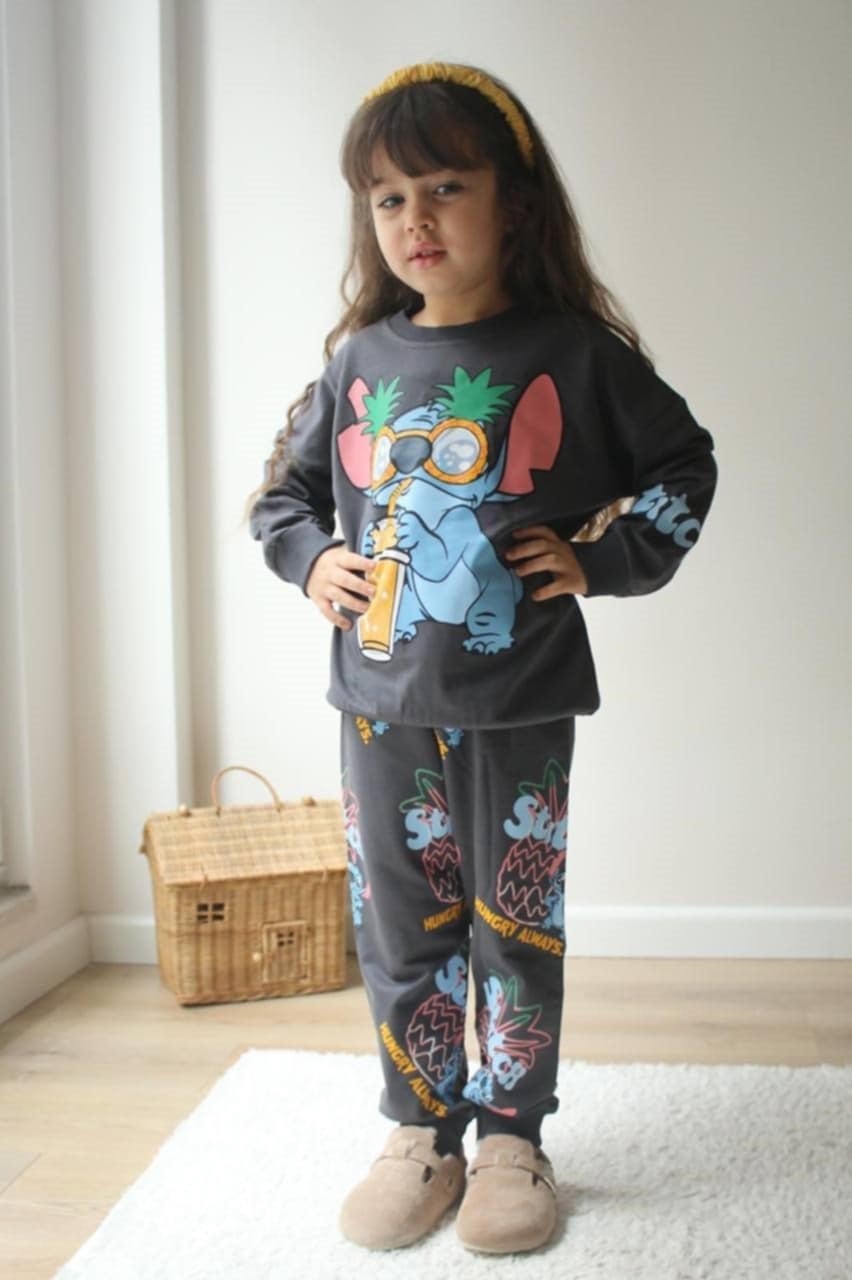 - Дизајн: Апликации со Стич на горниот дел и панталоните за весел и оригинален стил.
